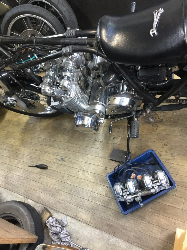 完成のご報告をしたところ、過去にもキャブにまつわるトラブルで困った経験があるとのことで、CRキャブへの変更も追加となりました。