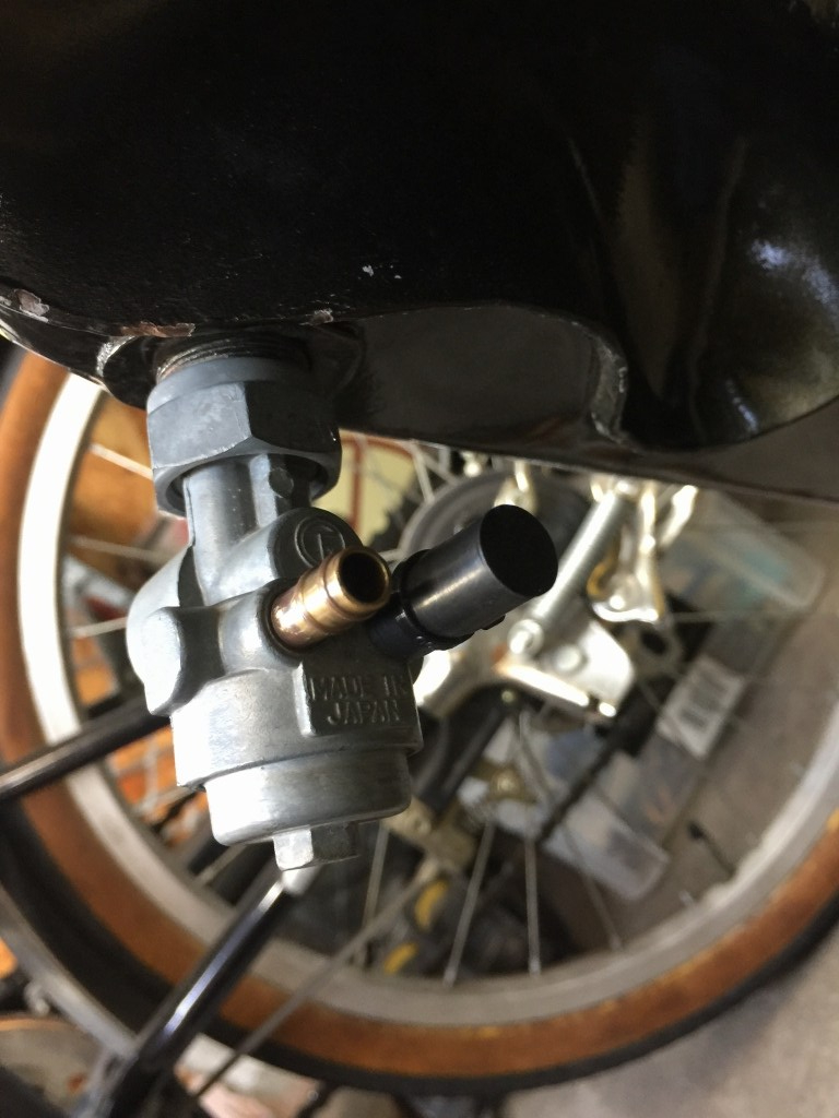 フューエルホースは1本でいいので、コックのアウトレットは片方塞ぎます。