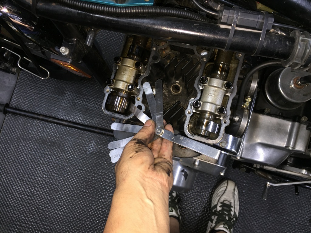 ヘッドカバーを外し、バルブクリアランスを計測しておきます。