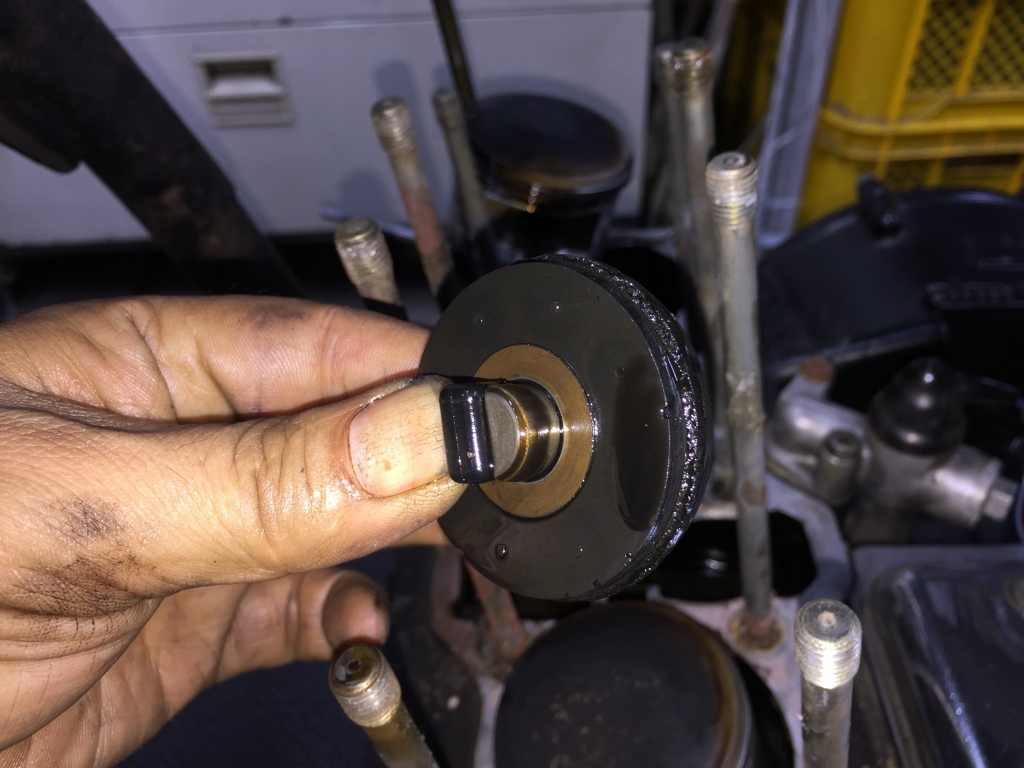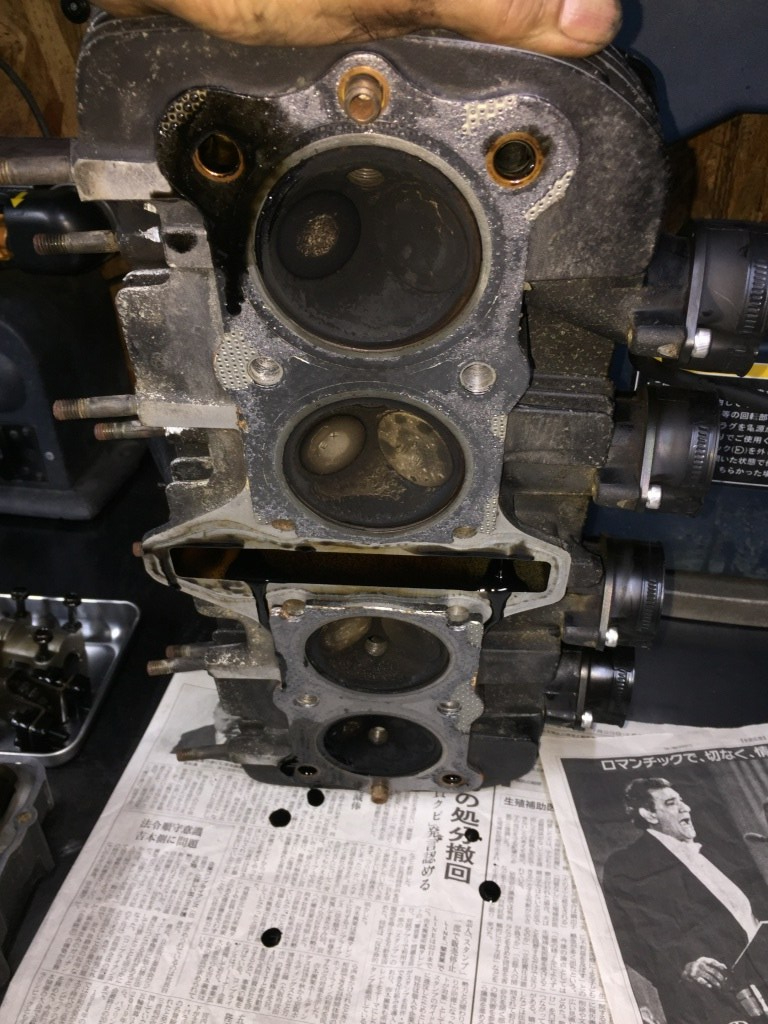 センターOリングに液体ガスケットが塗ってあるので、過去にヘッドまでは分解しているようです。