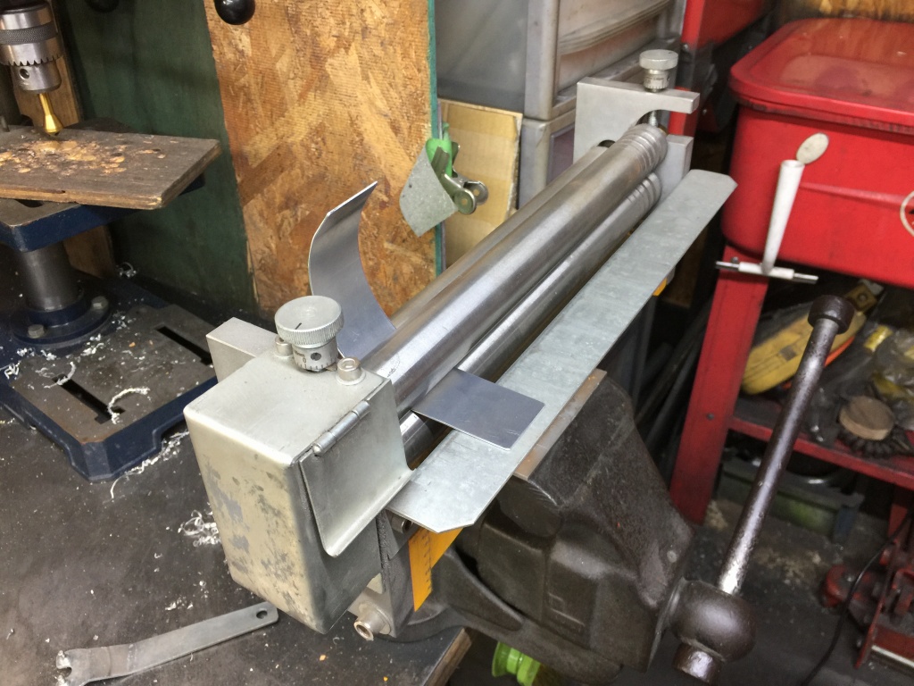 短冊状に切り出したアルミ板をローラーで丸めます。