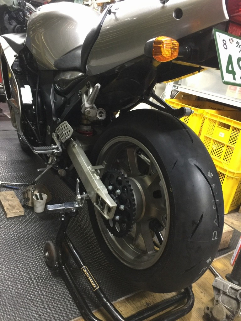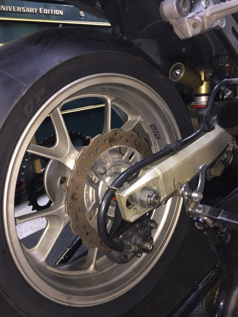 今回の12Rは、筑波も走らせて練習のひとつとするつもり。そのためのブレーキ強化は必須項目。重量も1000Jと同じくらいあり、アップハン仕様なので1000Jと乗り換えてもあまり違和感がありません。