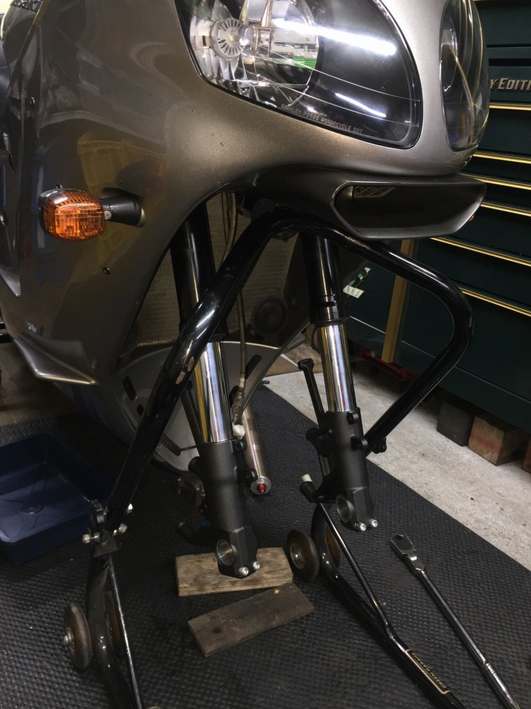 その後、去年の14Rを経て、今回4代目の12Rを入手。今回の車両は過去最安の25万円です。ハイパワーの感覚を衰えさせないためにも、ランニングコストの安い12Rでも遊びます。 フロントフォークのインナーチューブが錆びているので、いっそのこと14Rの足周りを入れることに。いろいろ調べてだいたい手順はわかりました。