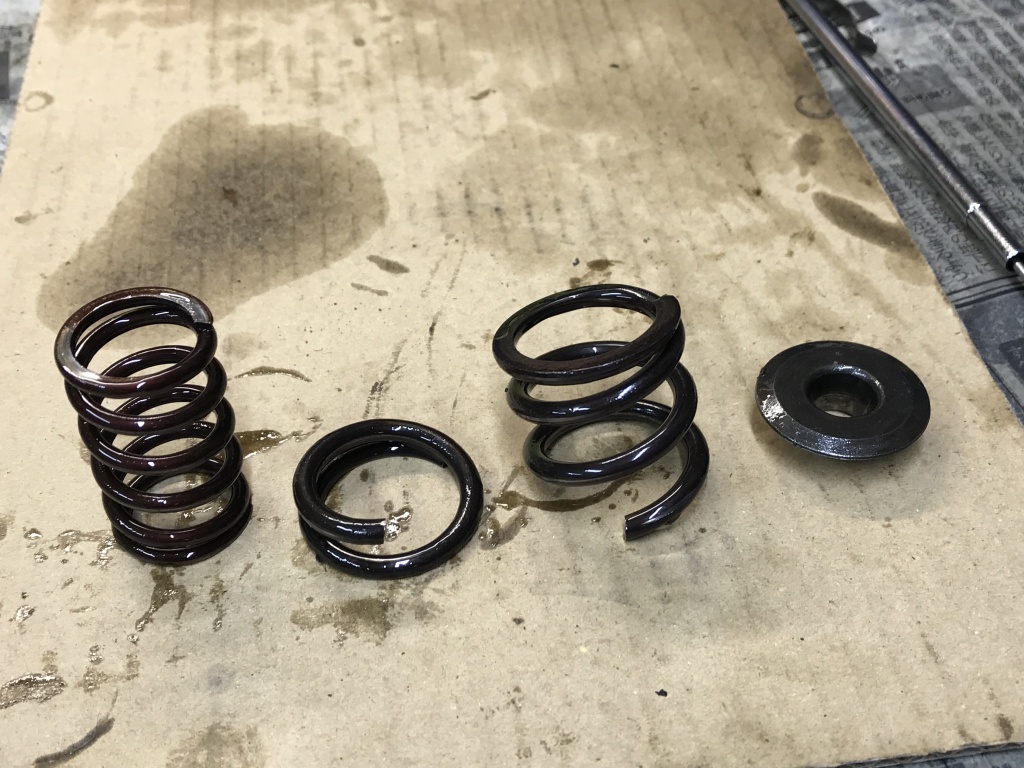 バルブスプリングを外します。純正ではなく強化スプリングが付いていました。