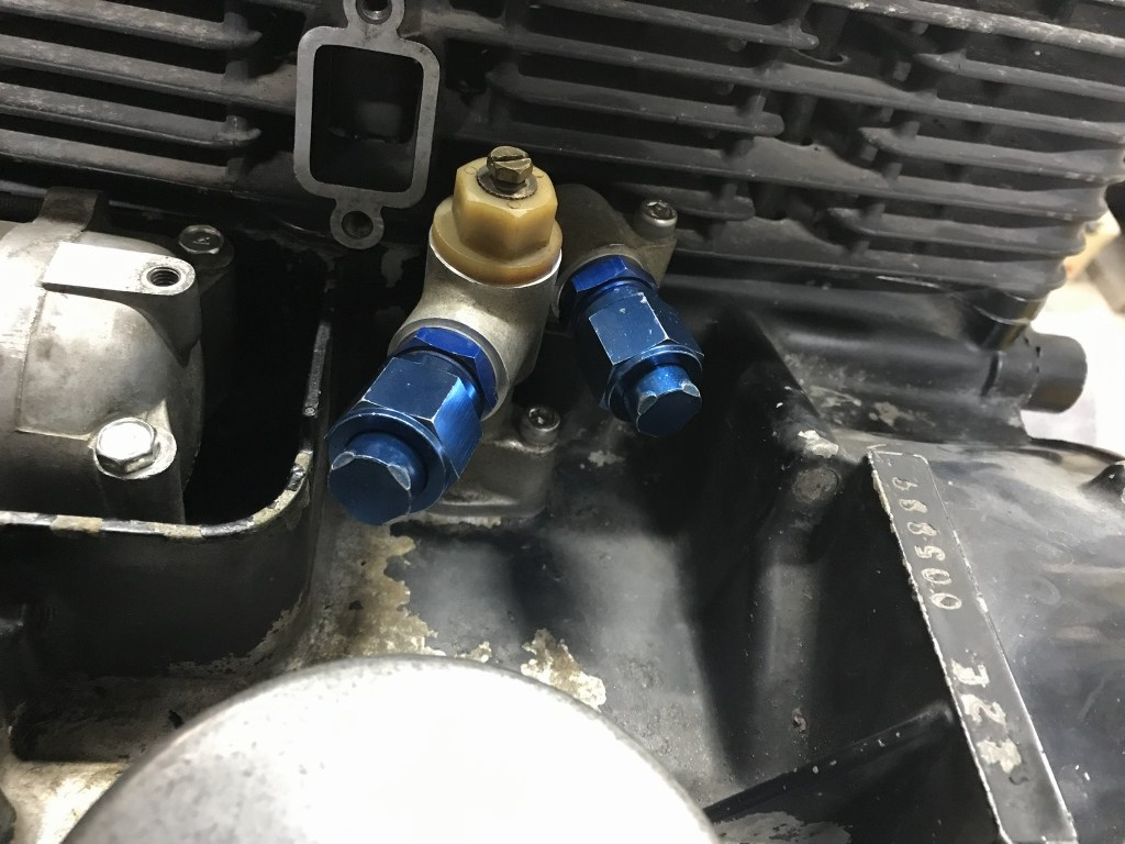 オイル取出しを取り付けます。Oリングでシールする面には液体ガスケットは不要です。