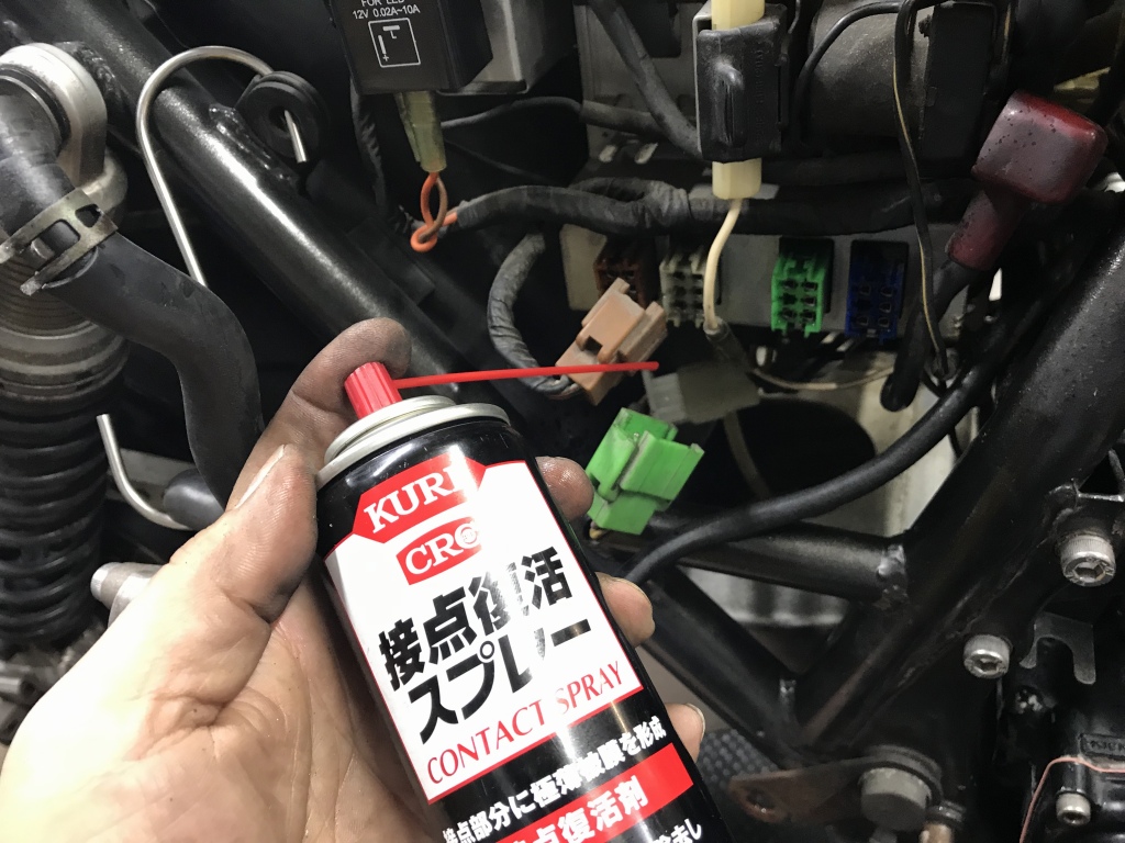 カプラー類は端子が腐食気味なところもあるので、全て接点復活スプレーを塗布しておきます。