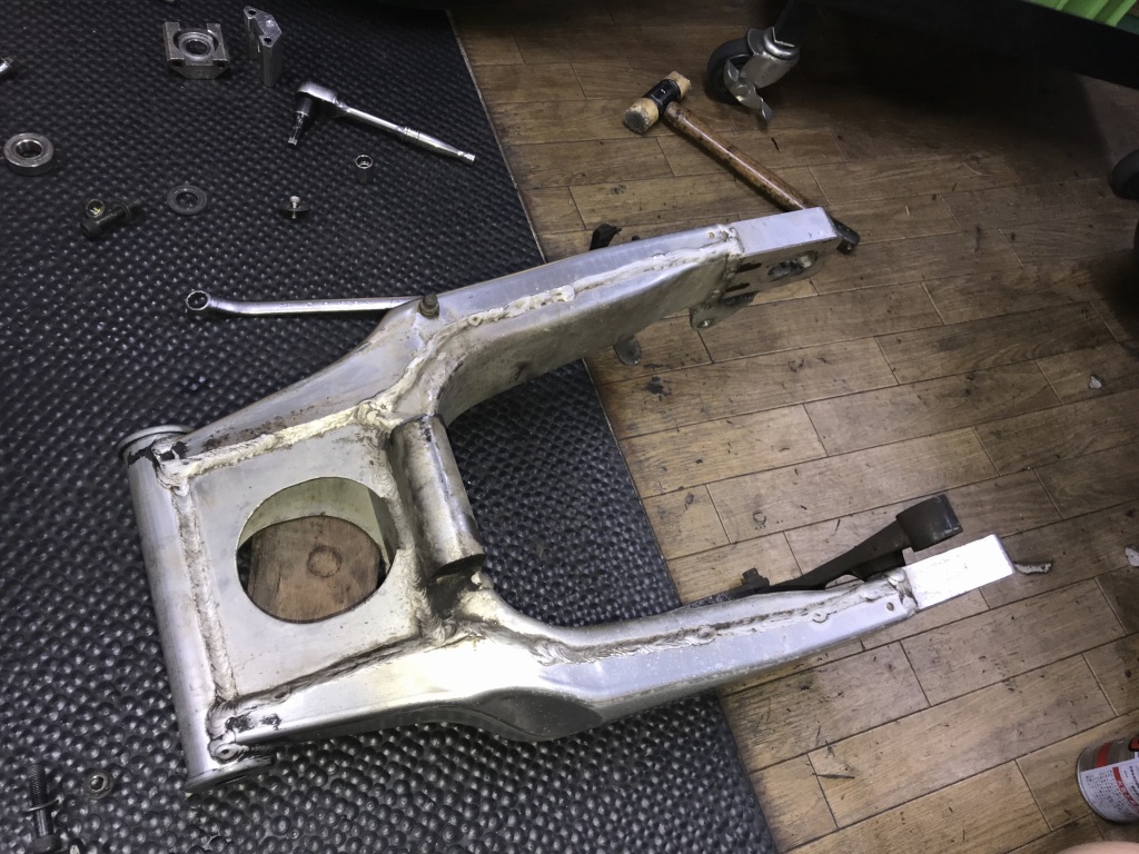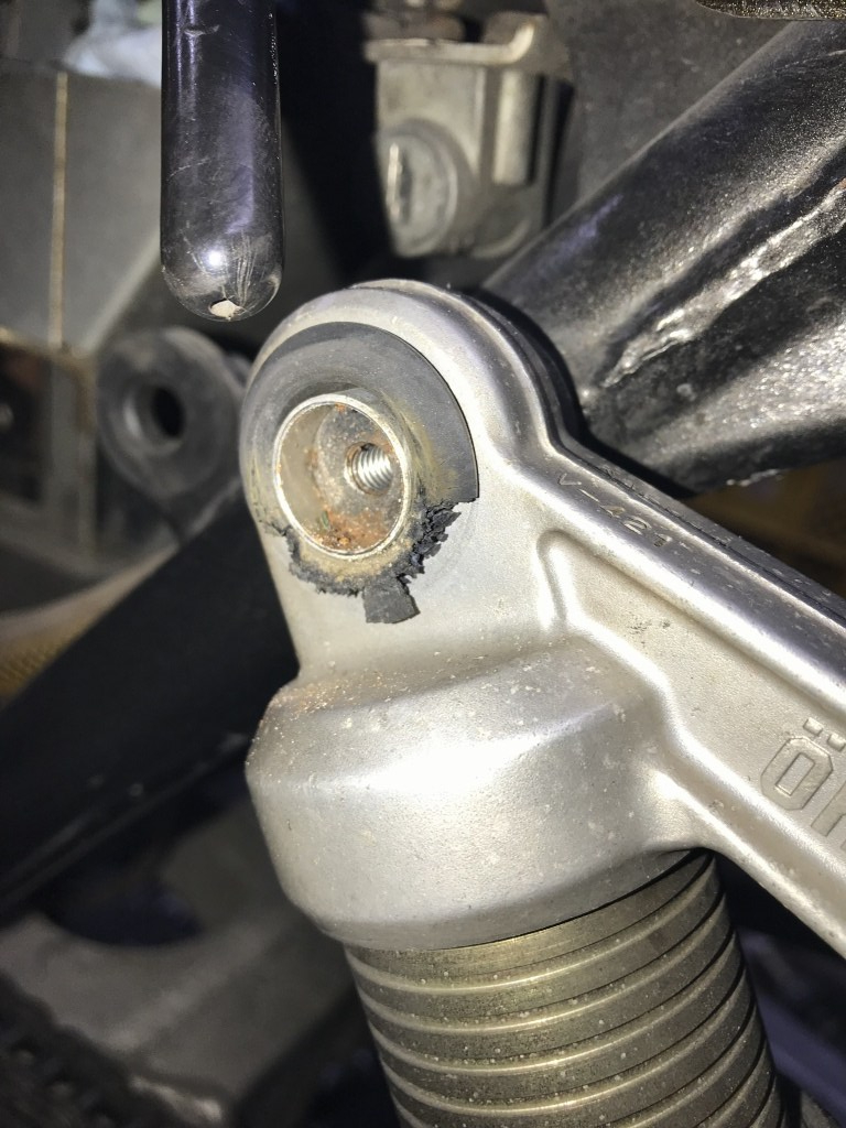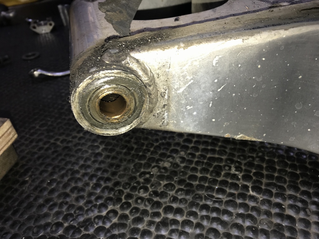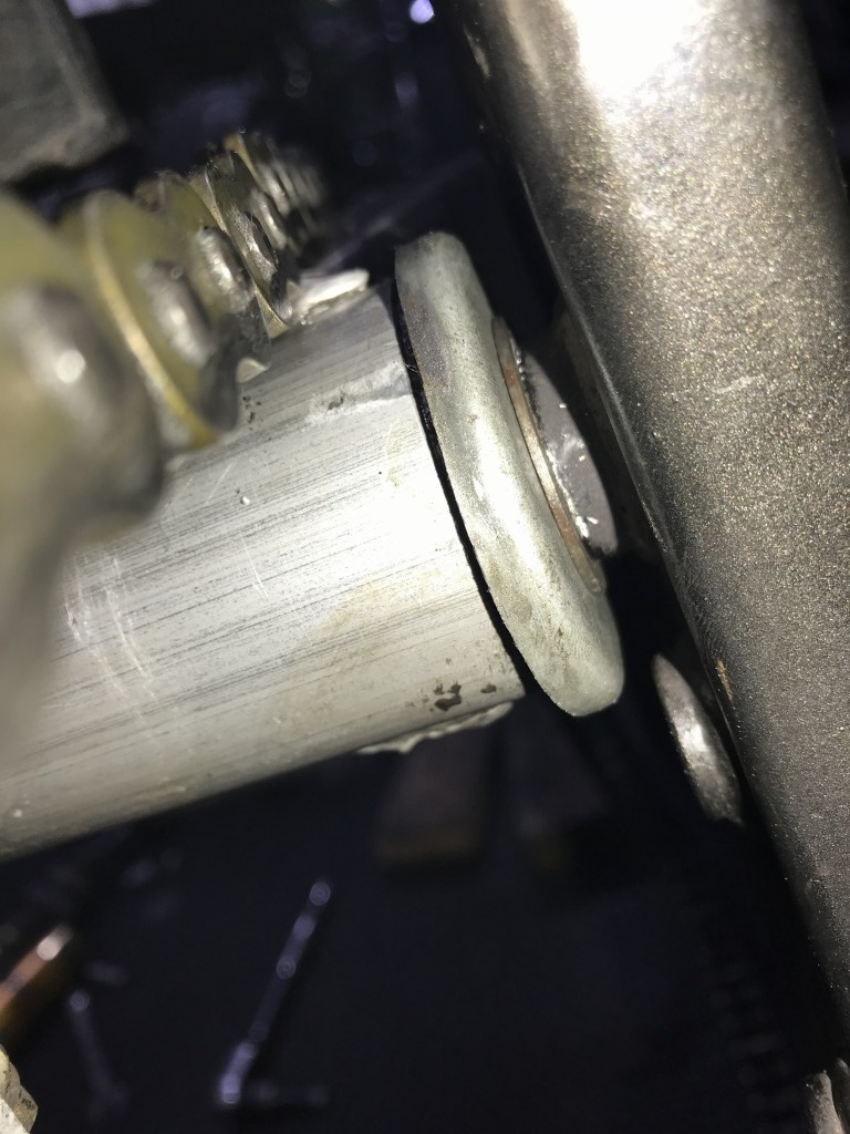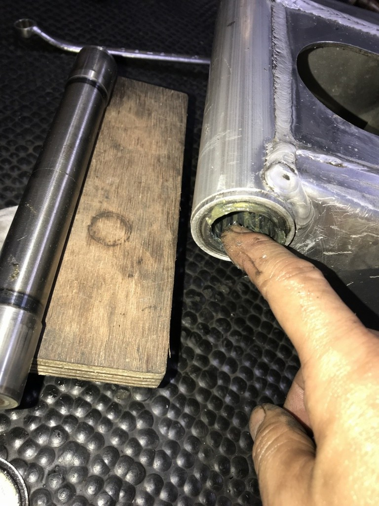 取り付けて軽く締めると、スイングアームが左右にカタカタ動きます。スラストのガタがあるようです。