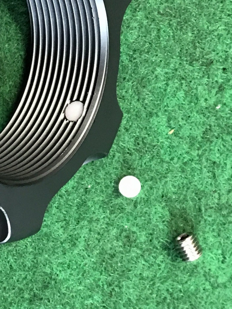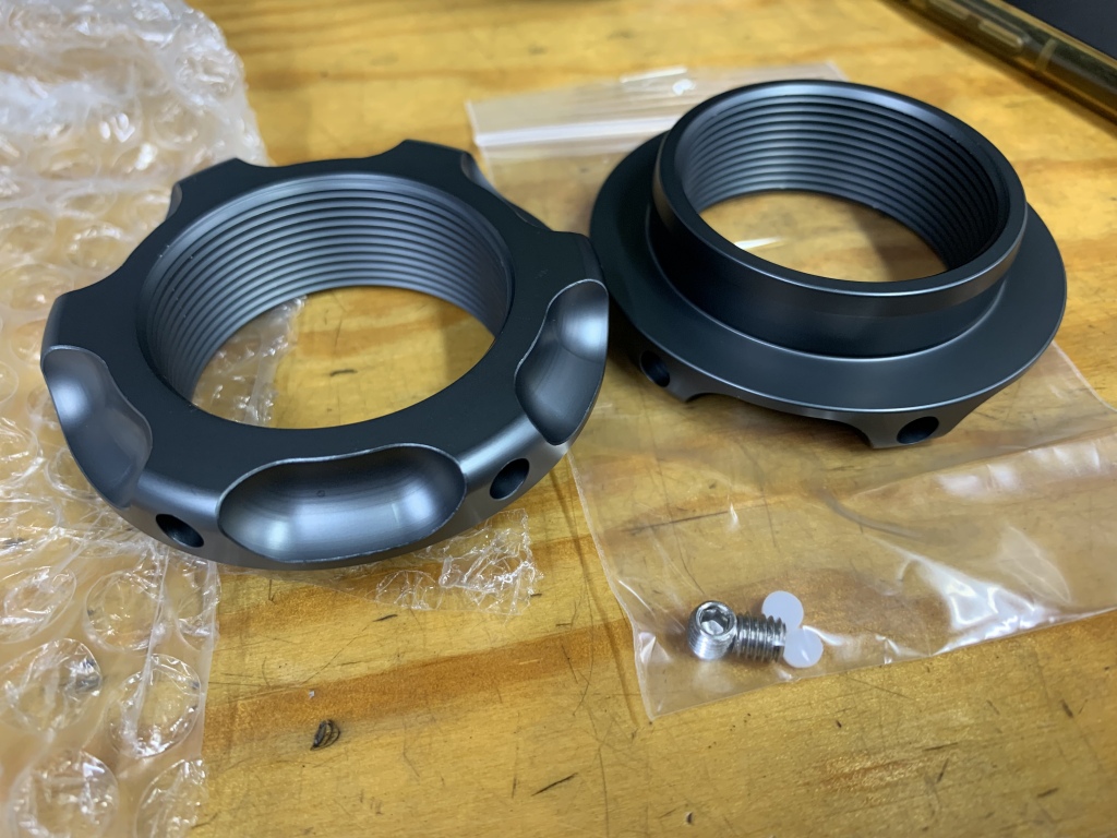 色変更のためアッパースプリングシートも交換します。ビニール袋の中は、周り止め用のイモネジとその先に入れるフリクション用の樹脂プラグです。
