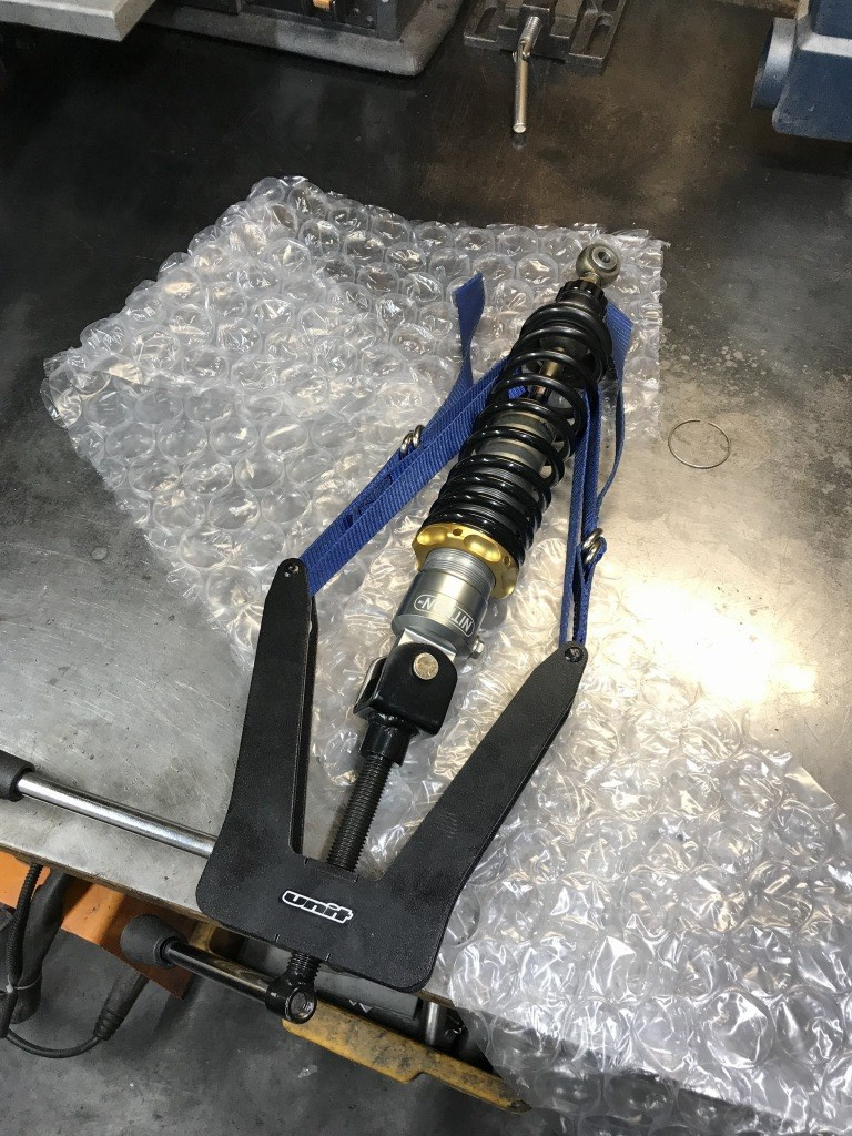ショートスプリングを入れ、プリロードを仮に10ミリ掛けておきます。
