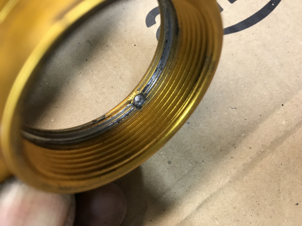 こちらはイモネジの奥の樹脂プラグが無くなり、イモネジが直接ネジに当たっていたようです。それを知らずに回してネジを痛めたのでしょう。