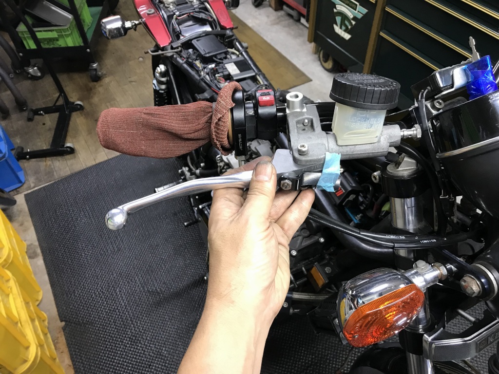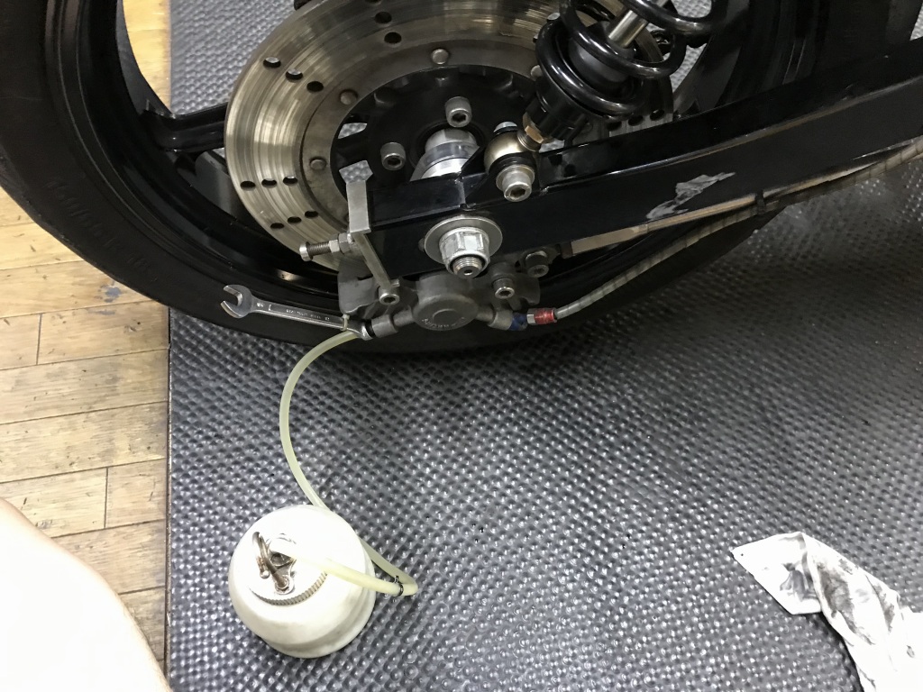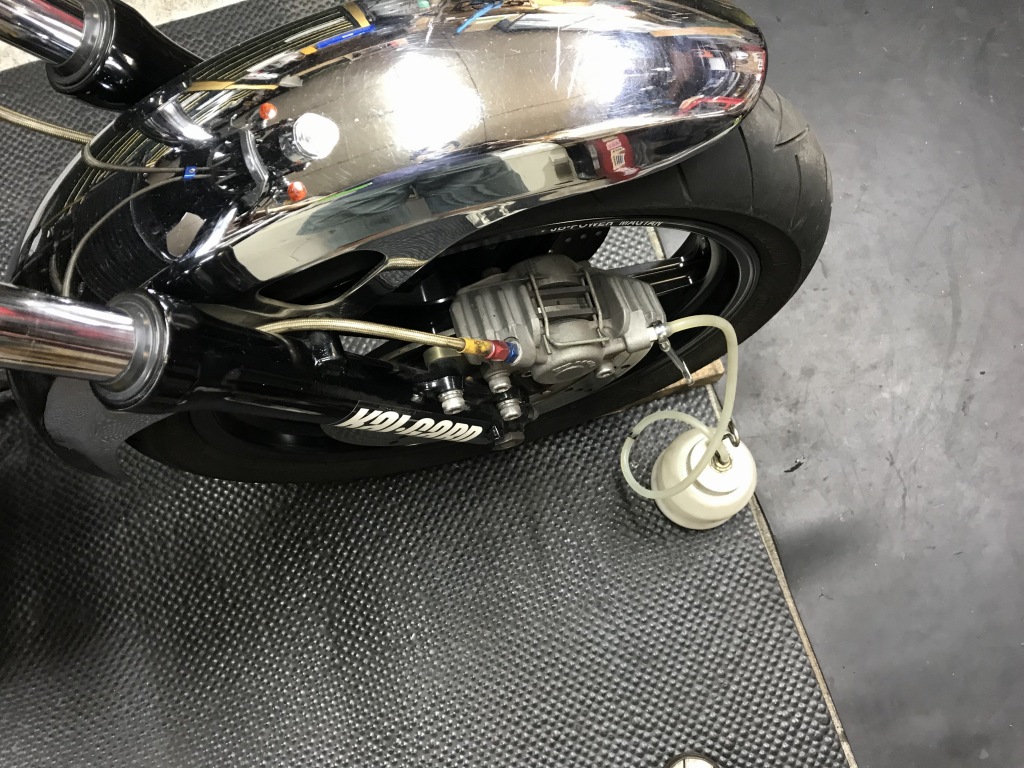 フロントマスターも交換するので、ブレーキフルードを抜いておきます。