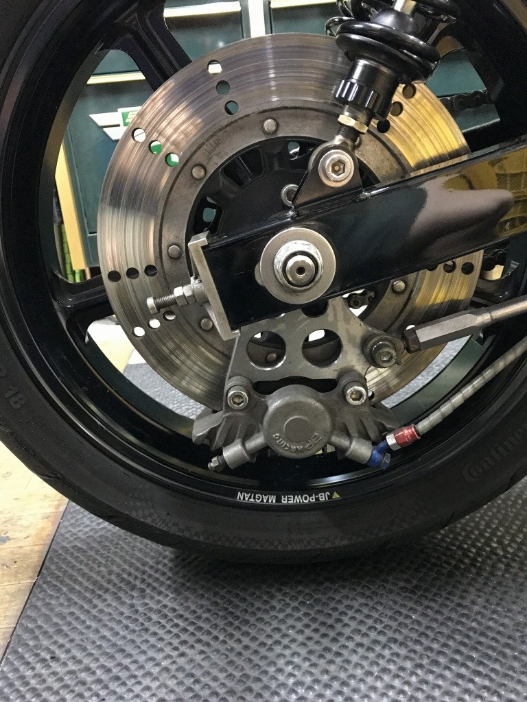 リヤブレーキ周りも刷新します。Φ250ミリローターとそれにかかわる変更です。