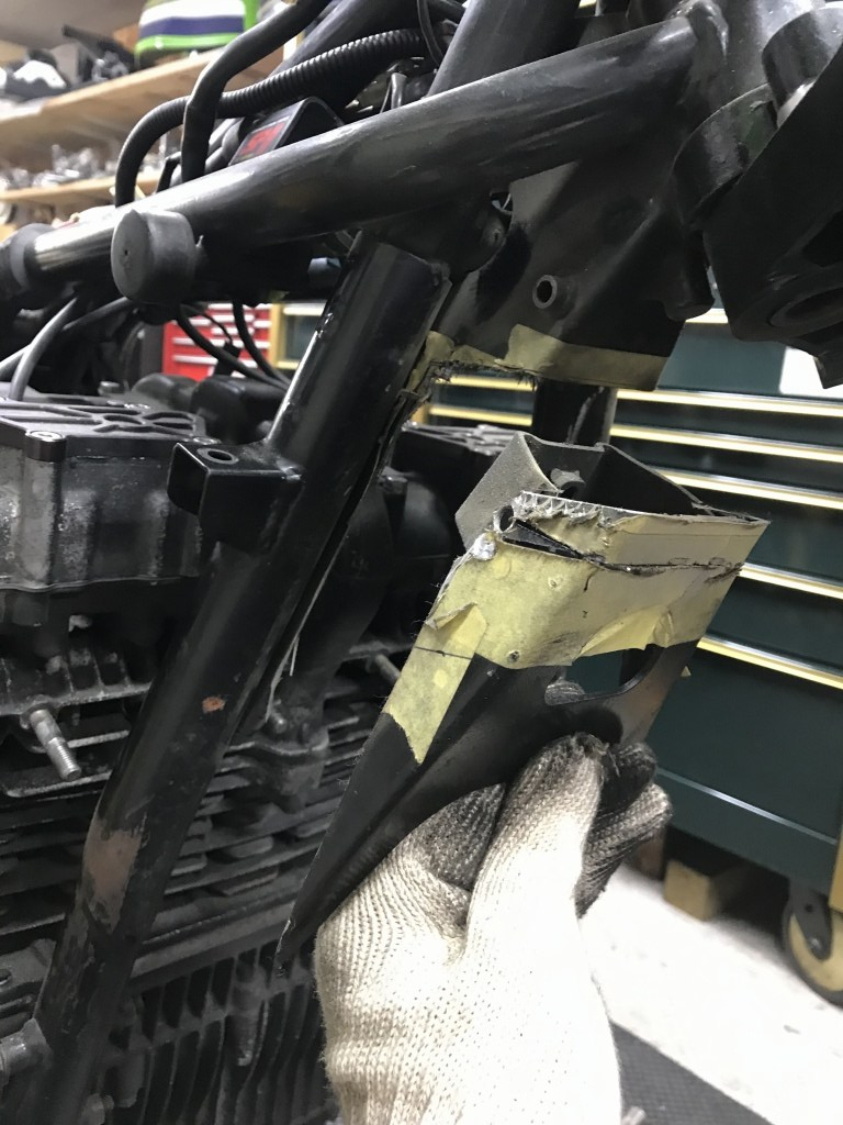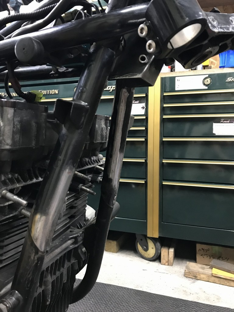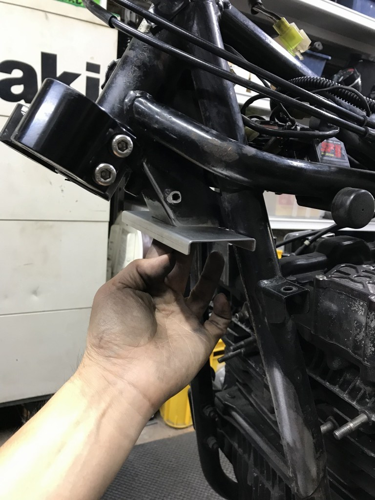 このあと、鉄板で作ったアッパーブラケットを溶接します。