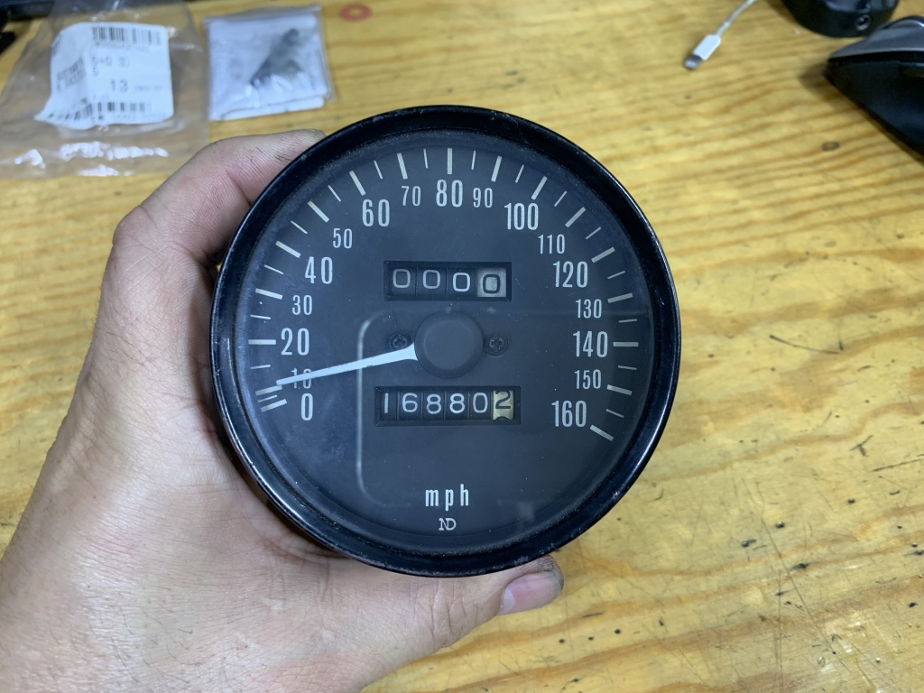 社外品のスピードメーターが故障しましたが、代替として純正スピードメーターを手配して入手しました。それがこちら。