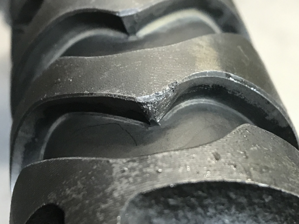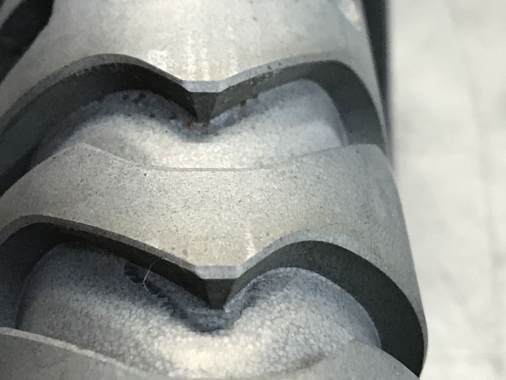 山頂の平らな部分の角が摩耗すると、ギヤ抜けに大きく影響します。