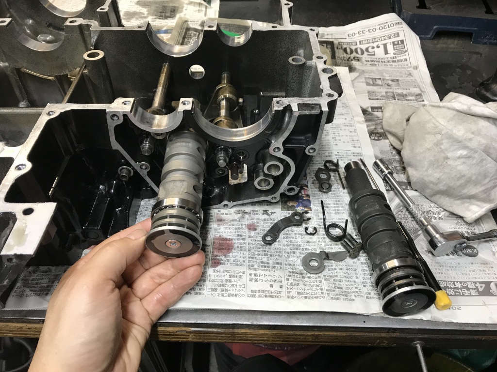 前々回の筑波走行で1回だけギヤ抜けがあったので、シフトドラムも念入りに点検します。