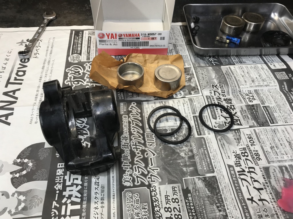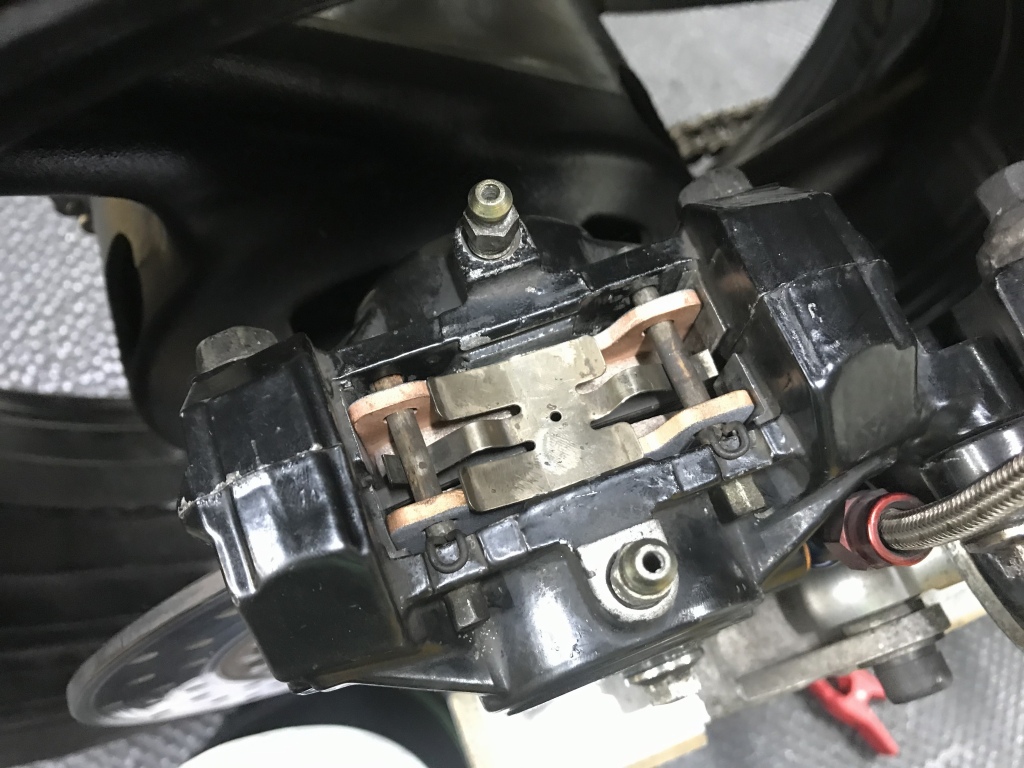 オーバーホールしたらキャリパーを取り付けます。減っていたパッドも交換します。
