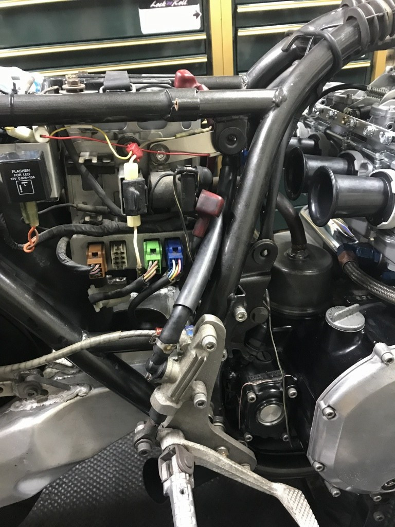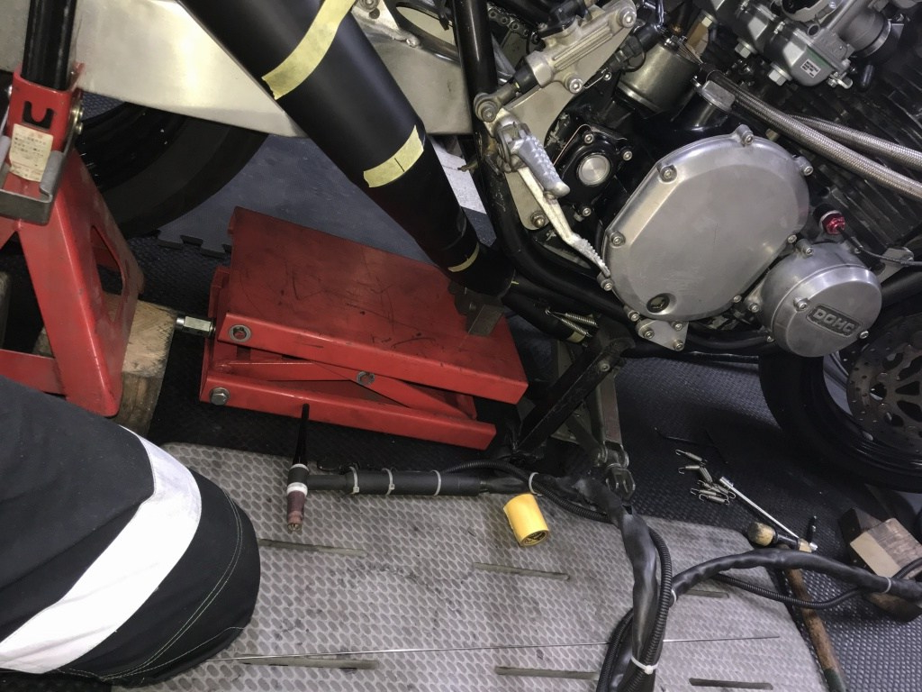 リヤキャリパーを外します。この辺も全てFZR1000とのこと。