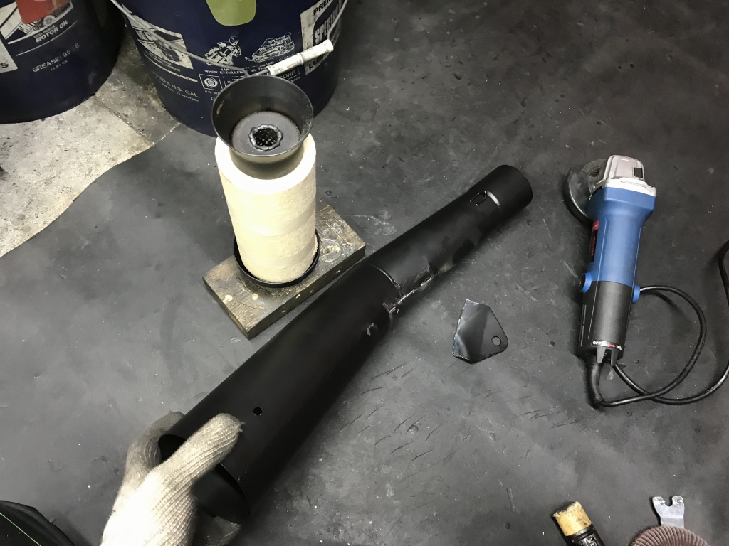 切断面を研磨します。サイレンサーの差し込みは、スプリング止めからバンド止めに変更します。