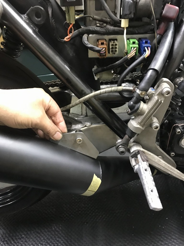 サイレンサーのステーも作り直すので、既存のステーは削除します。