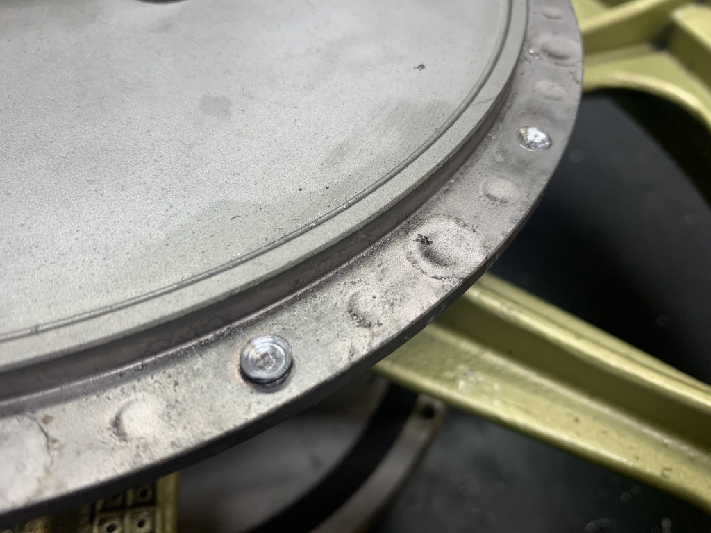 皿キャップボルトは6角穴が小さいので、固着すると簡単になめてしまいます。本数ほどはドリルで揉んで外すことになりました。