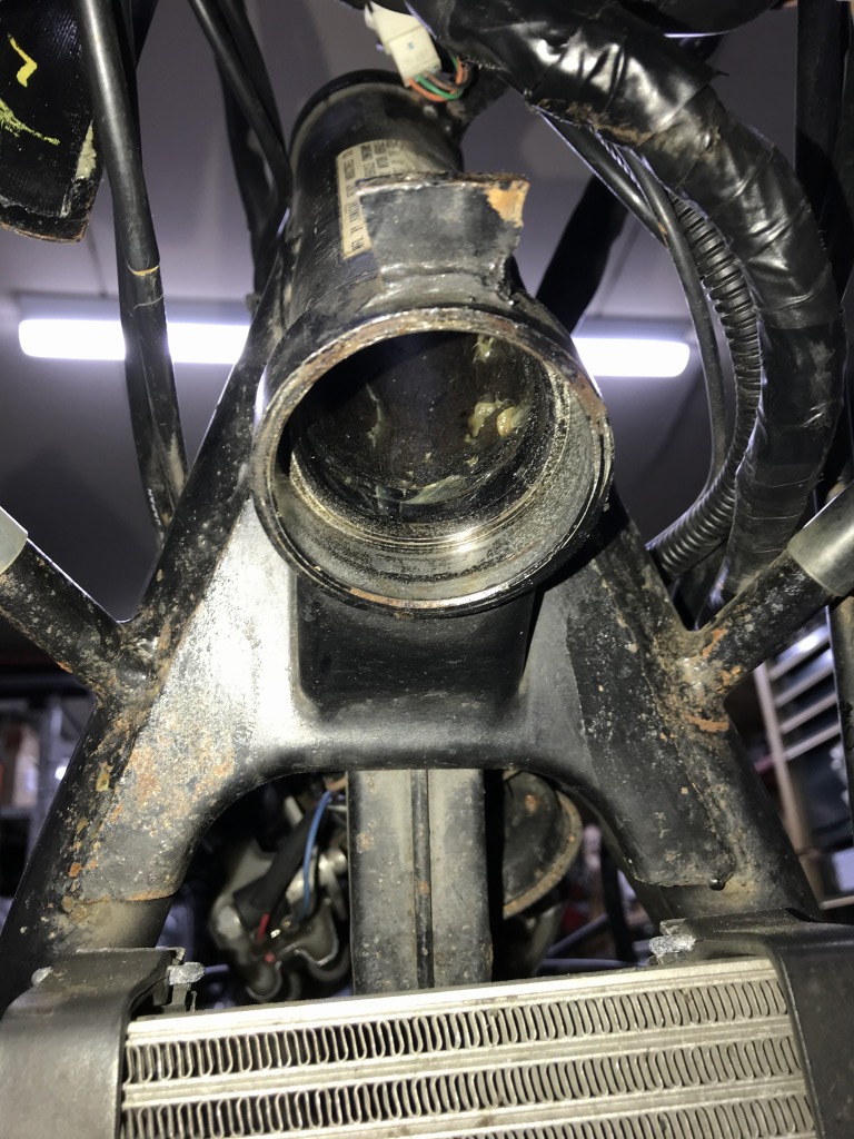 外したロアステムはこちら。15年ほど前のスープアップ製S1ステムです。