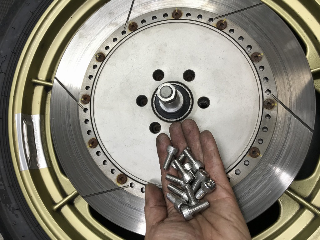 屋外でシートをかけての保管車両なので、ローターボルト類もかなりサビており、今回はステンレスボルトに変更します。