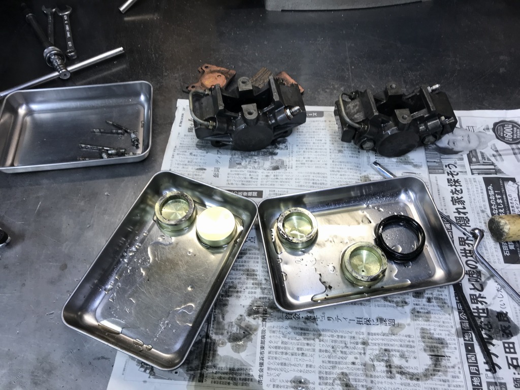 装着してから約5年が経ちましたが、走行は2000キロ位でしょうか。最近はあまり走行していなかったのでピストンが錆びてフルードもれしたものと思われます。