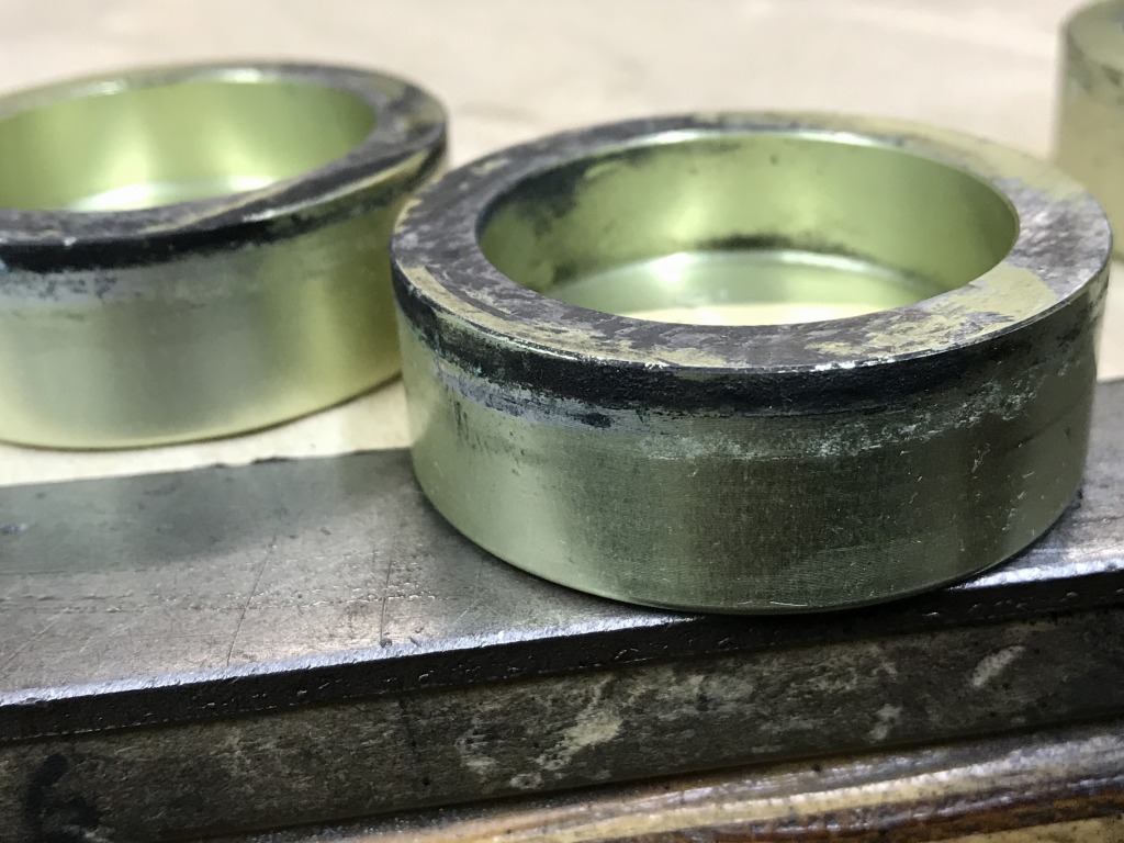ピストンはこちら。アルマイトされていますがキャリパーから出ていた3ミリほどが汚れています。