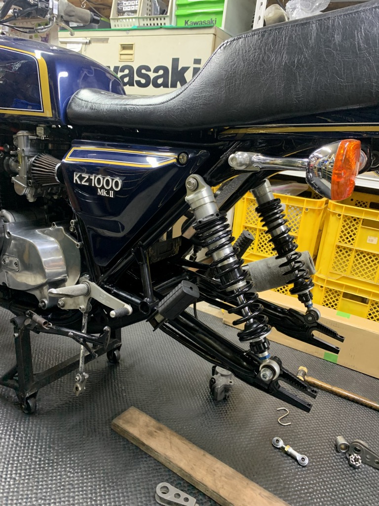リヤパッドも新品にし、リヤキャリパーを取り付けます。トルクロッドは超ショートタイプになりました。