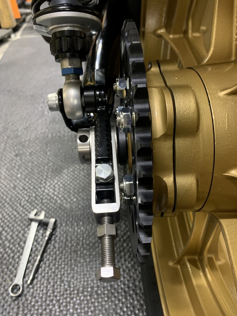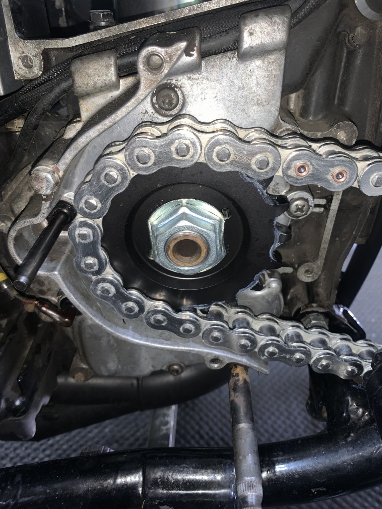 スプロケボルトとチェーン引きが干渉するので対策します。