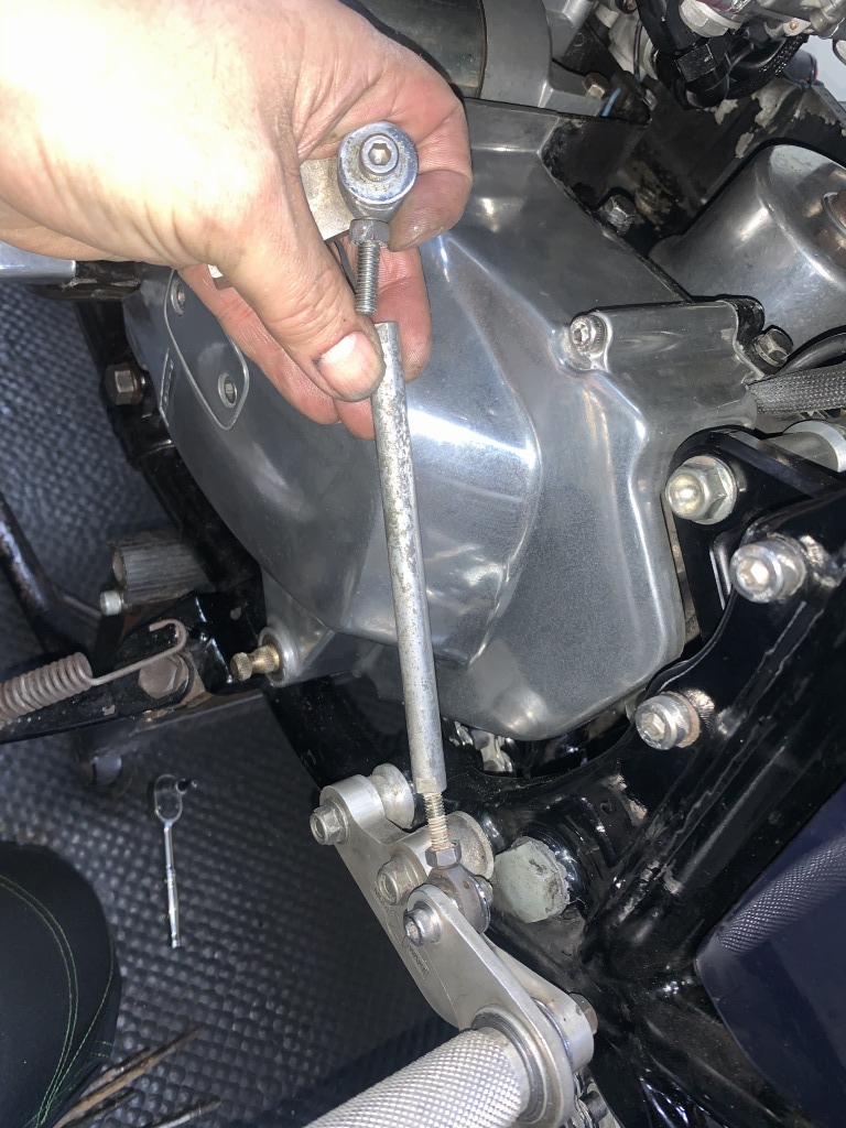チェンジロッドを伸ばしたいので、一旦分解してネジ長さを確認します。