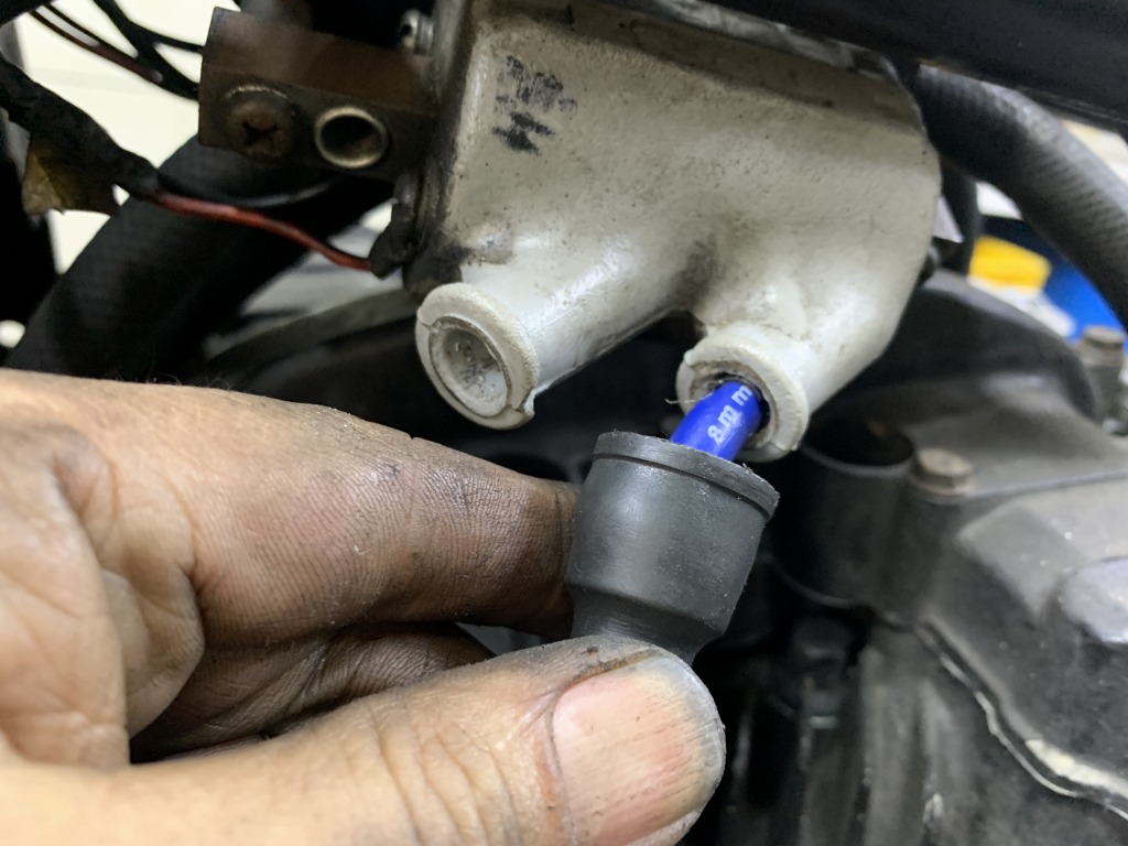 ブリーザーホースはコンパクトな90°曲がりタイプに変更。