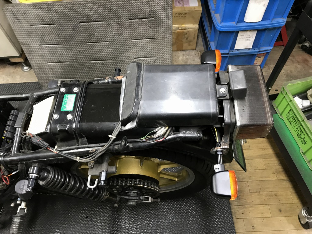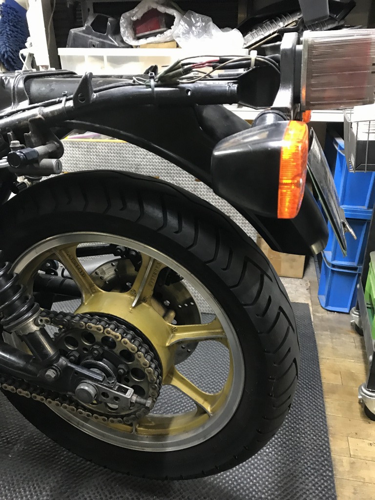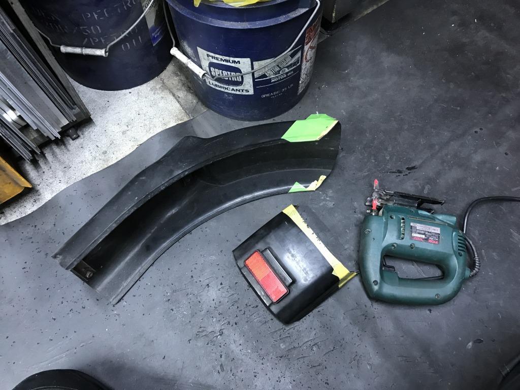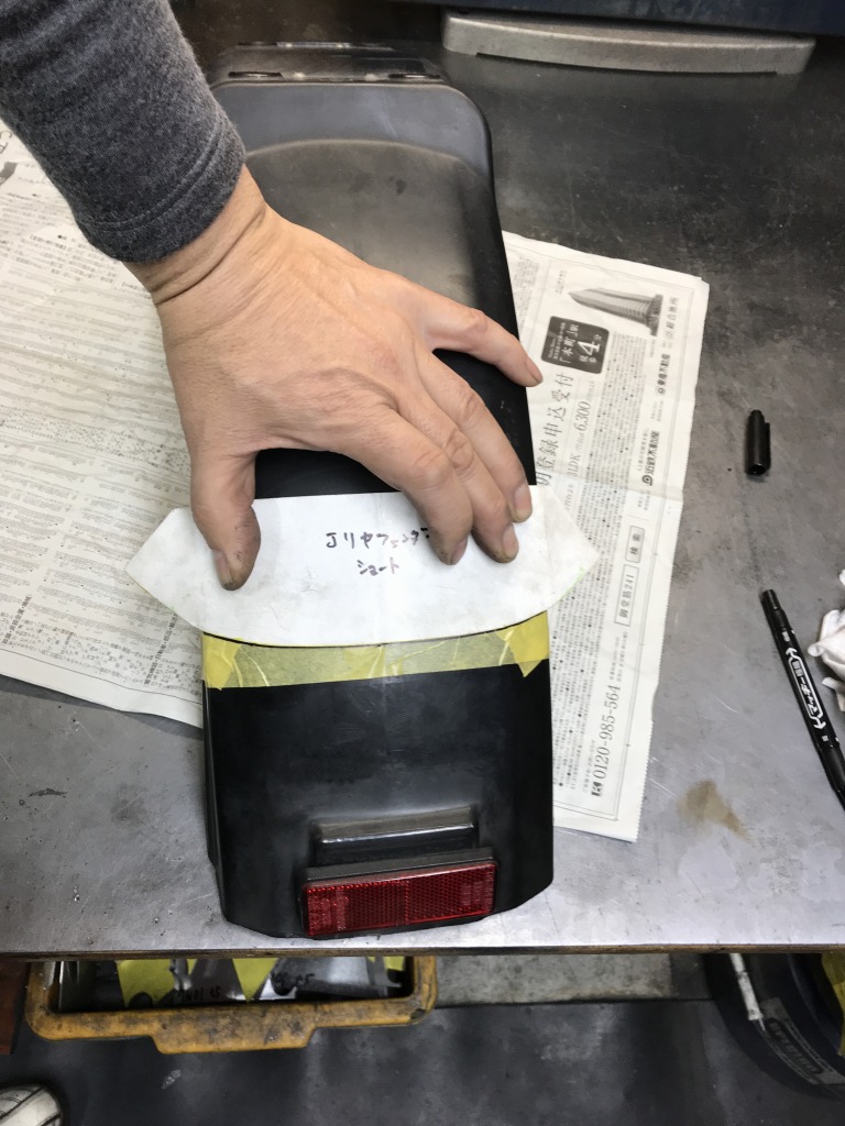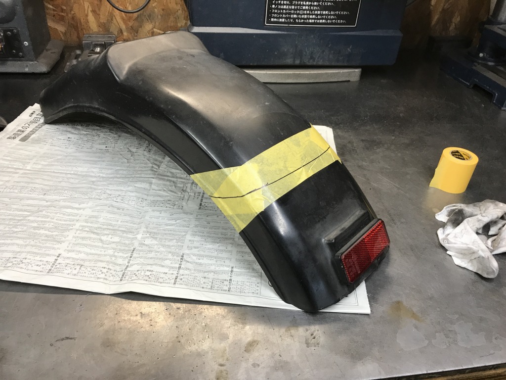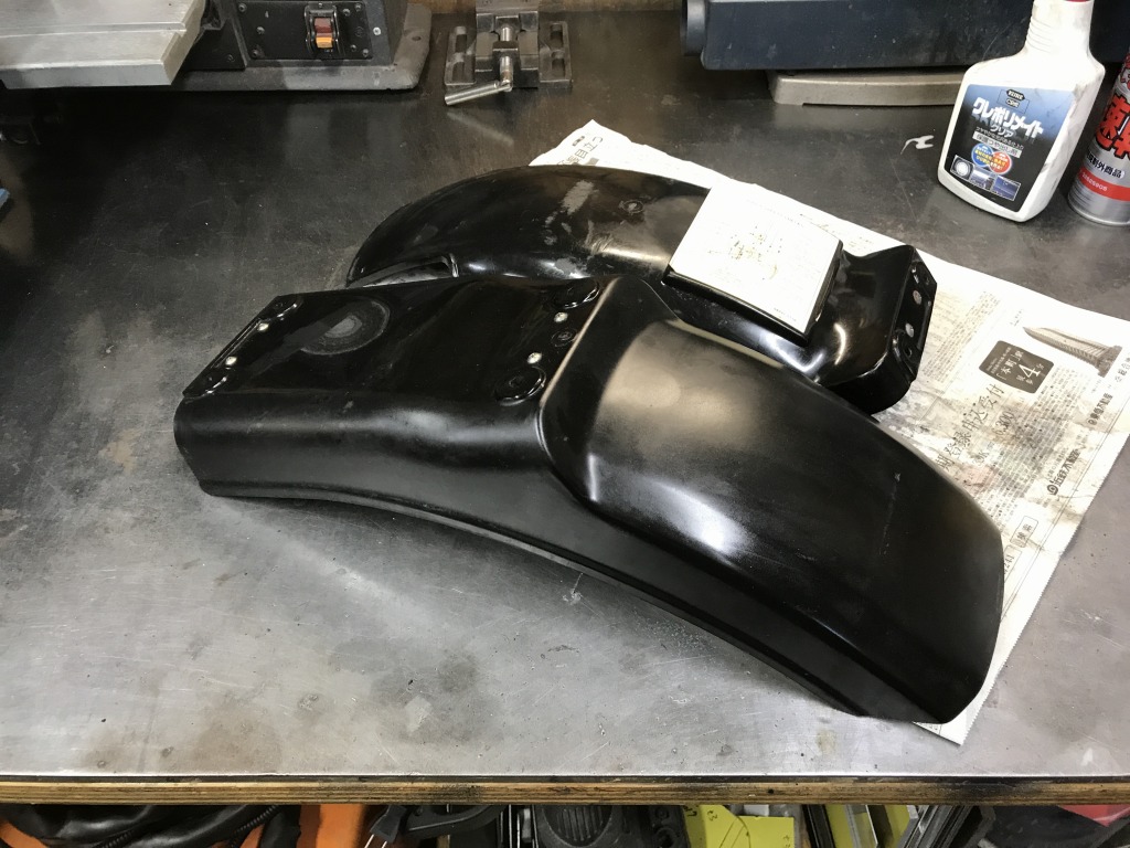 ヨーロッパ仕様のロングフェンダーが付いていましたが、短くしたいとのことで純正ショートの形状に加工します。