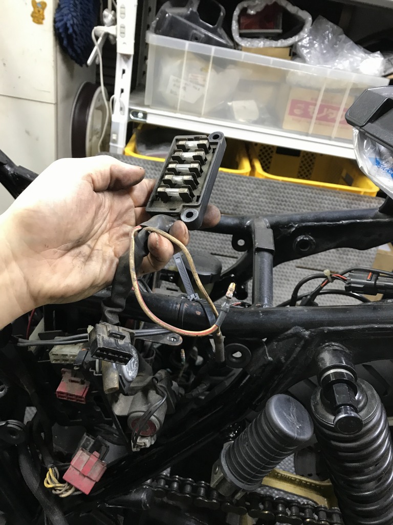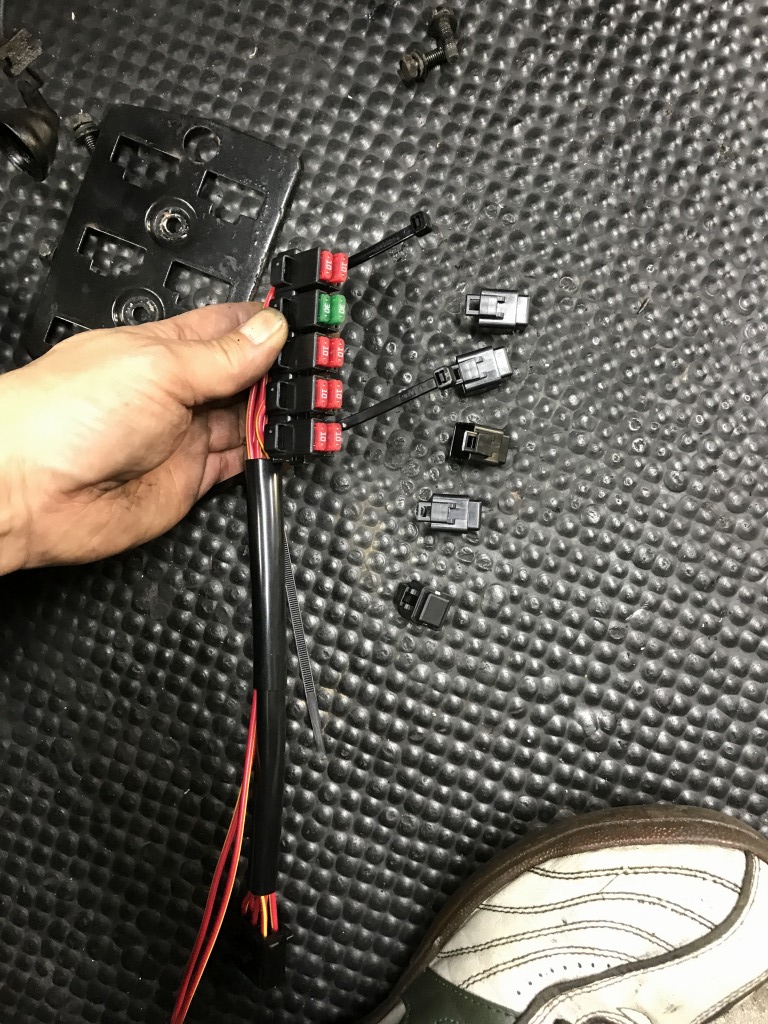 カプラーパネルを分解し、ヒューズBOXを組み込みます。外したカプラーの端子には、全て接点復活スプレーを塗布しておきます。