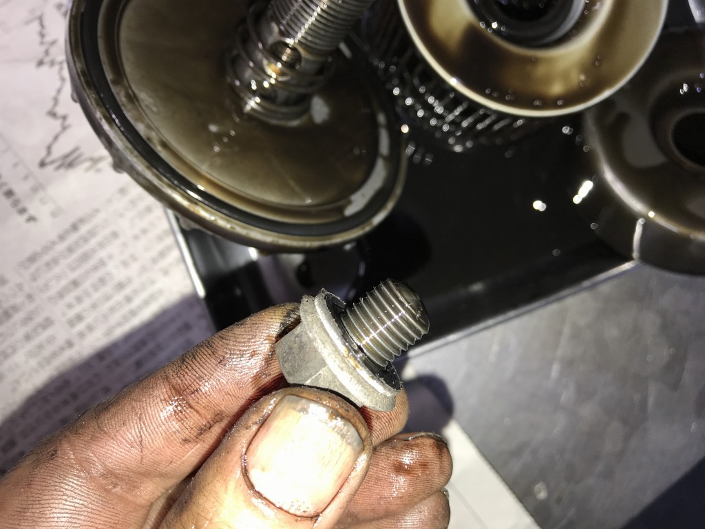フィルターボルトにあるはずのワッシャーは無く、ドレンボルトのワッシャーは2枚重ねです。