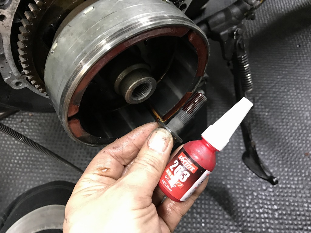 ジェネレーターローターの取り付けボルトはネジロックを併用します。
