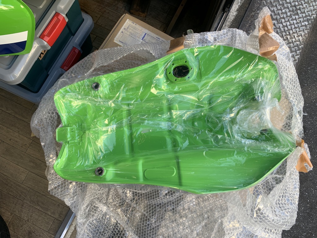 半分は外装関係で、カウルやタンク、シートの新品も混じっています。
