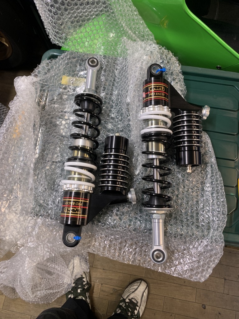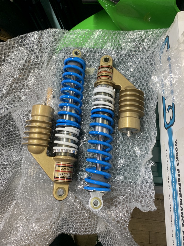 こちらはワークスパフォーマンスの新品です。長期保管なのでナイロンブッシュは要交換。