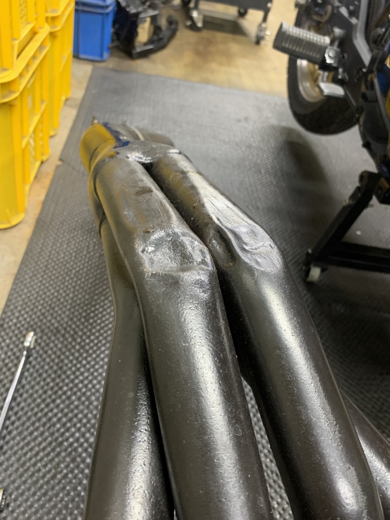 パイプ2本は1/3くらい潰れているので、マフラーは交換をお勧めします。
