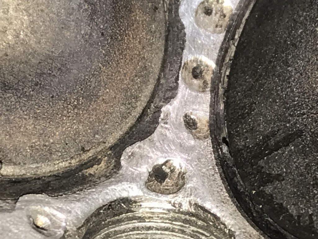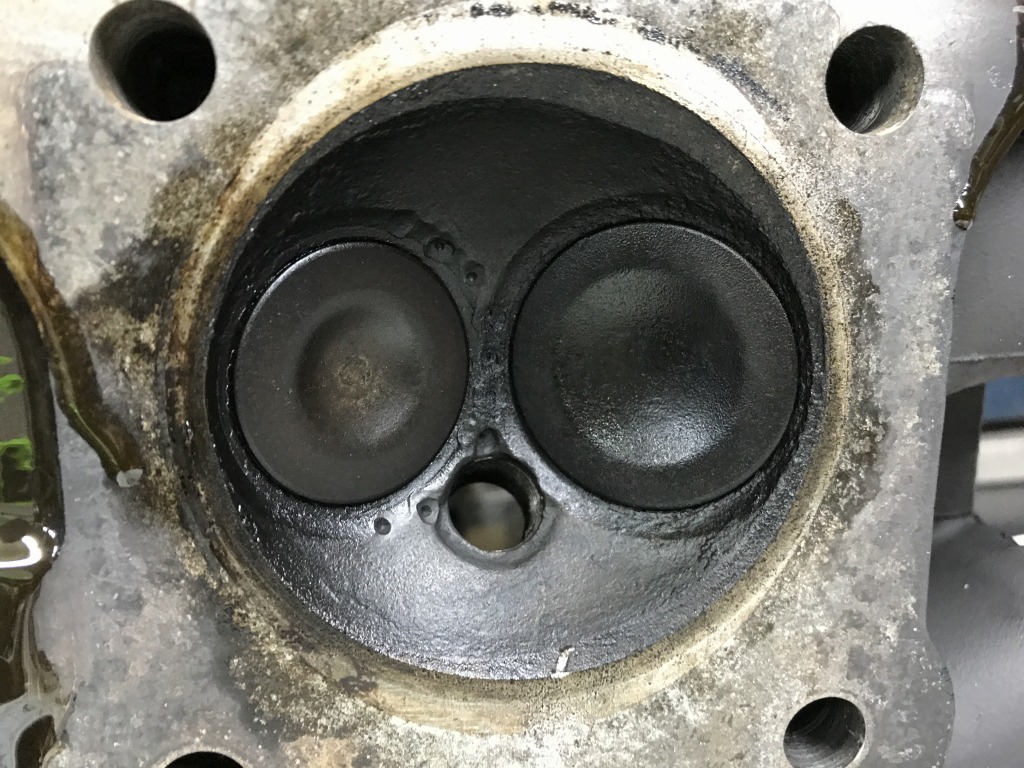 ヘッドの燃焼室をみてみると、3番のバルブ周りに不審な窪みが多数あります。