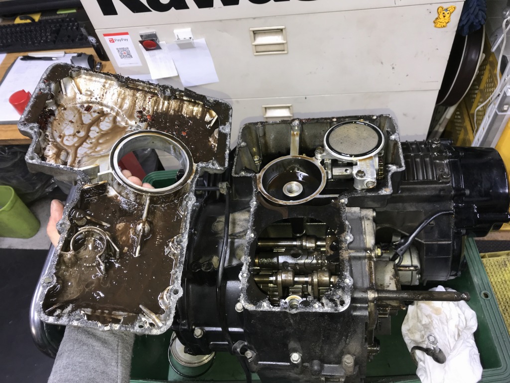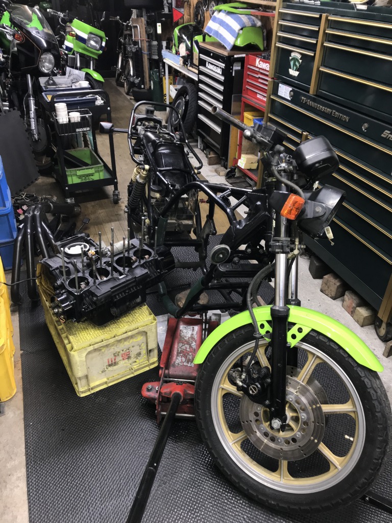 エンジンは腰上分解整備を想定、車体はメインハーネス交換など電装系の更新は計画済みです。