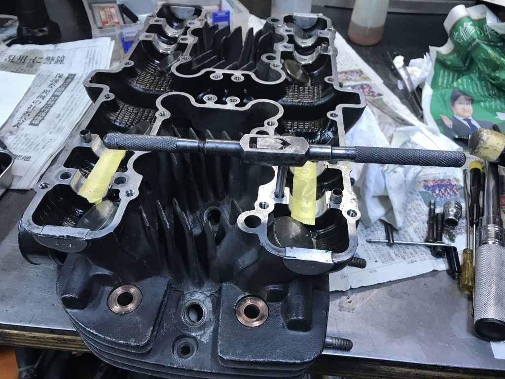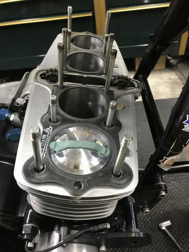 バルブとピストンのクリアランスを確認するため、エンジンを仮組します。