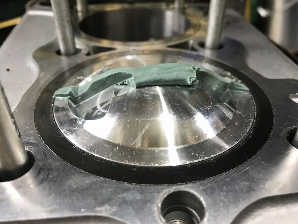 仕込んでおいた粘土についたバルブのスタンプから、ピストンとバルブのクリアランスを確認します。