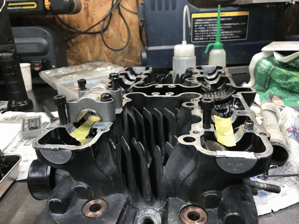 ヘッドの方は、カムホルダーネジの3ヶ所のトルクが掛からないので修理します。過去に何度もヘリサート加工などしていますが、長年の使用に伴い傷んできます。