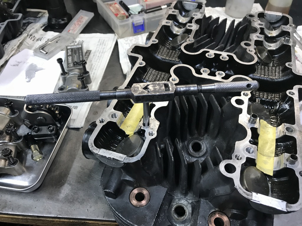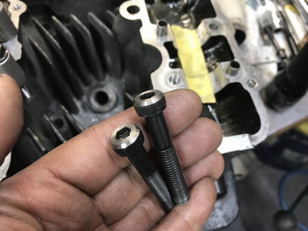 ボルトはそのままではヘッドカバーに当たるので、頭を削って低くします。