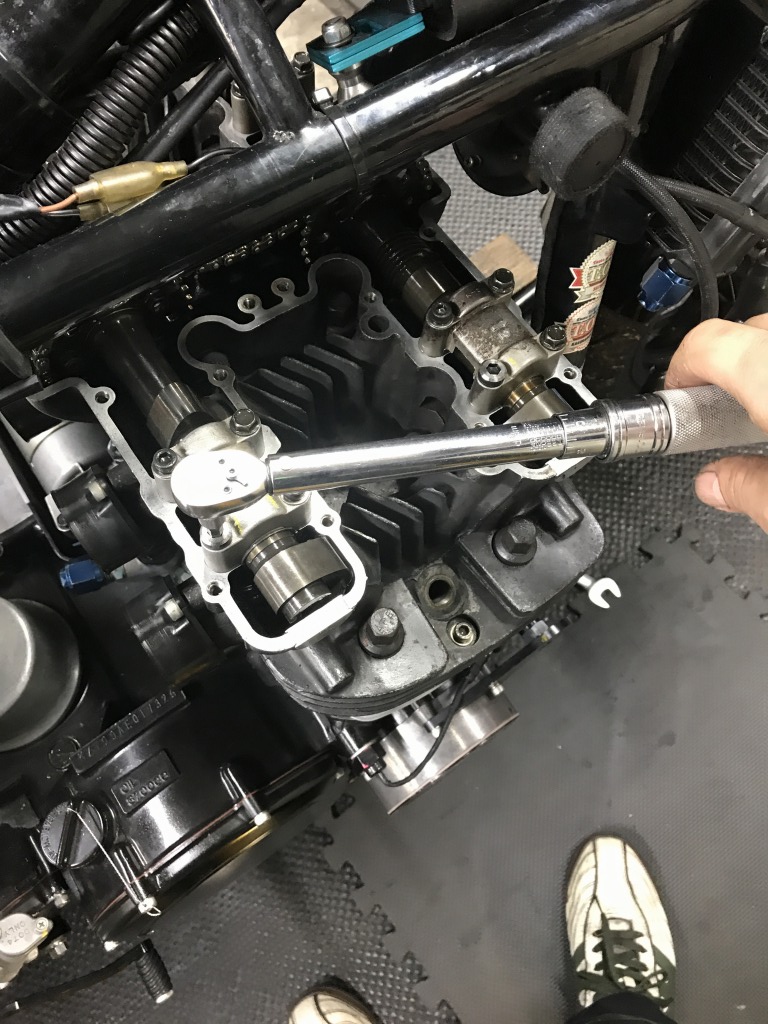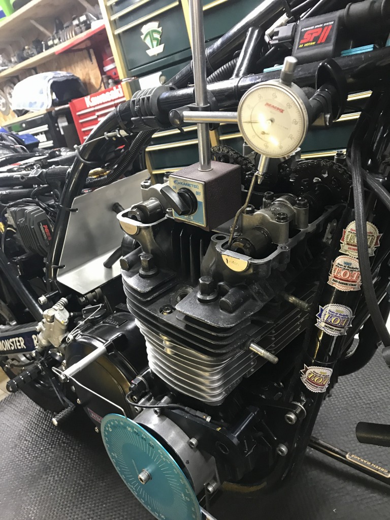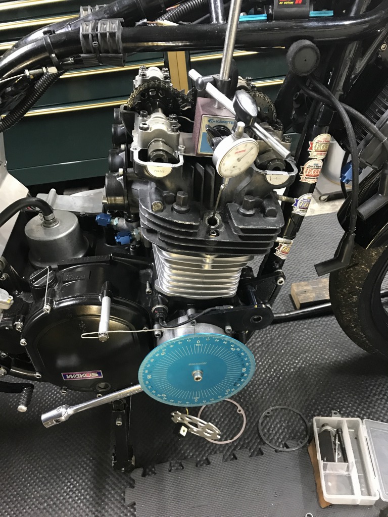 バルブタイミングを確認します。ガスケット厚みもほぼ変わらないので、値は前回のセット時と同じ、このままでOKです。