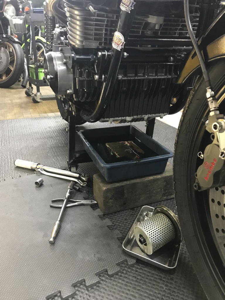 最後にエンジンオイルを交換します。