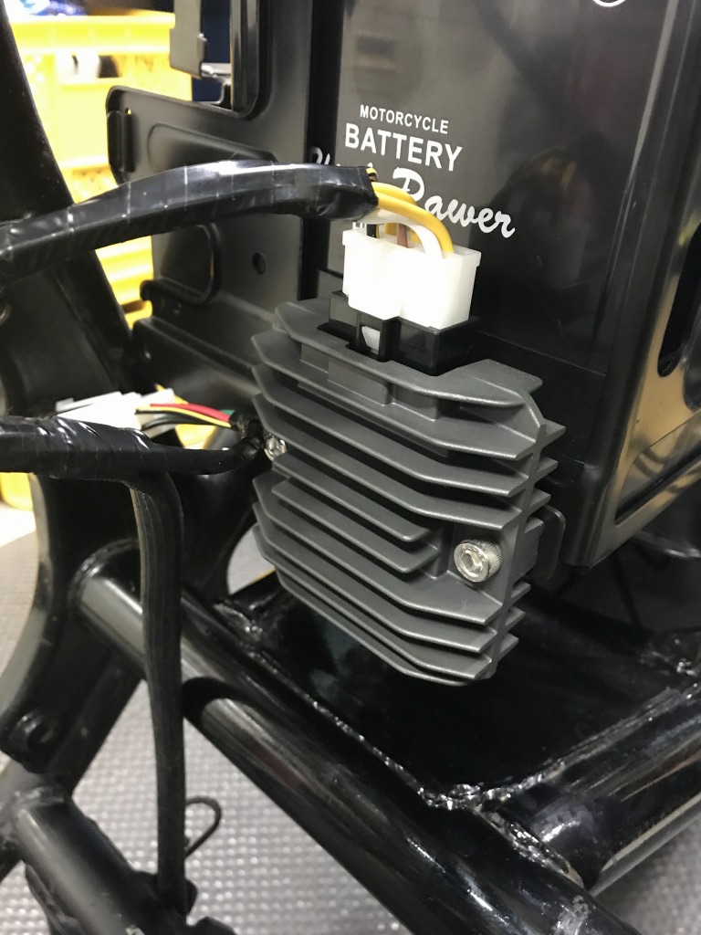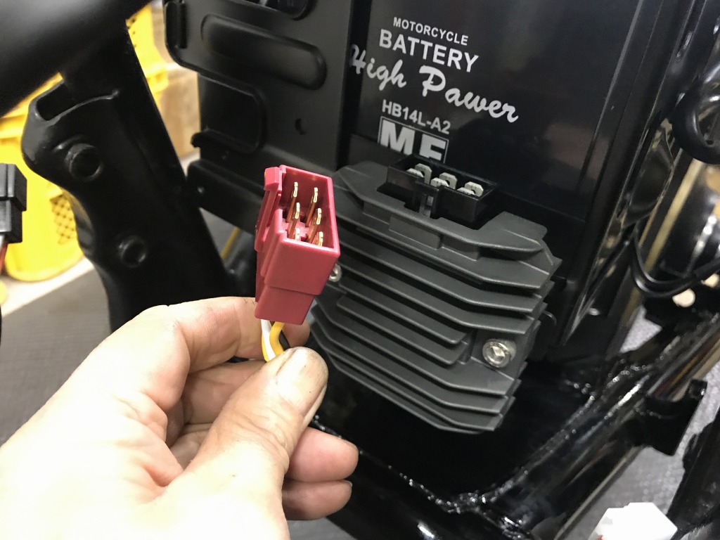 レギュレーターはゼファー750純正を使います。1000Rのメインハーネスとはカプラーが異なるので改造します。