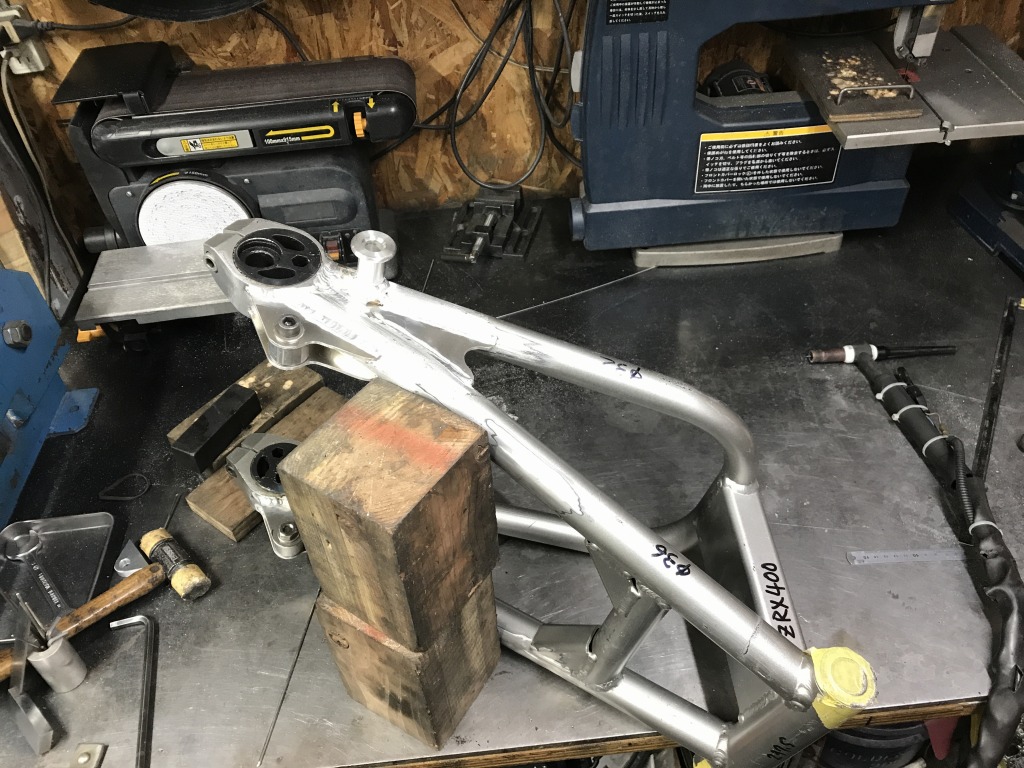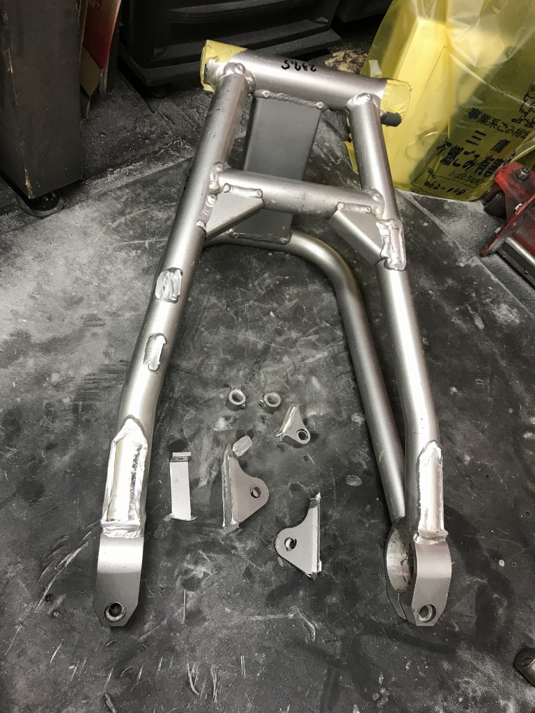 ZRX400改のS1スイングアームについて、コンスタントにお問い合わせがあるのでサンプルを製作します。先ずは不要なブラケットなどを削除します。